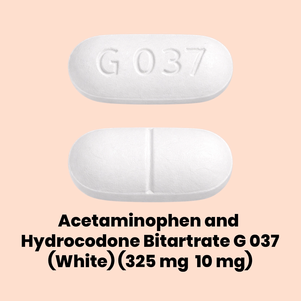 Acetaminophen and Hydrocodone Bitartrate G 037 (White) (325 mg / 10 mg)