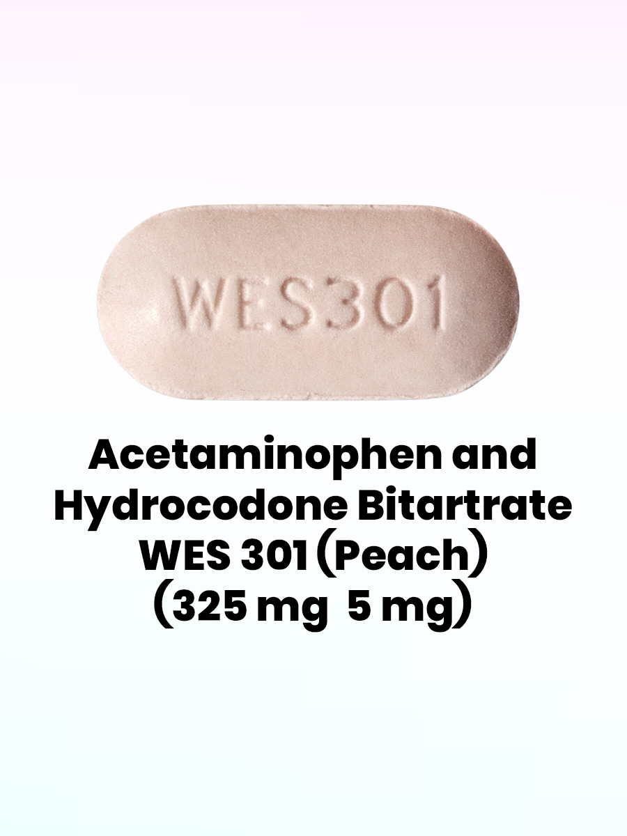 Related Medication: Acetaminophen and Hydrocodone Bitartrate V 35 92 (White) (500 mg / 5 mg), Acetaminophen and Hydrocodone Bitartrate M357 (White) ( 500 mg / 5 mg), Acetaminophen and Hydrocodone Bitartrate WES 302 (White) (325 mg / 7.5 mg), Acetaminophen and Hydrocodone Bitartrate G 036 (White) (325 mg / 7.5 mg), Acetaminophen and Hydrocodone Bitartrate M366 (White) (325 mg / 7.5 mg), Acetaminophen and Hydrocodone Bitartrate V 36 05 (Orange) (325 mg / 7.5 mg)