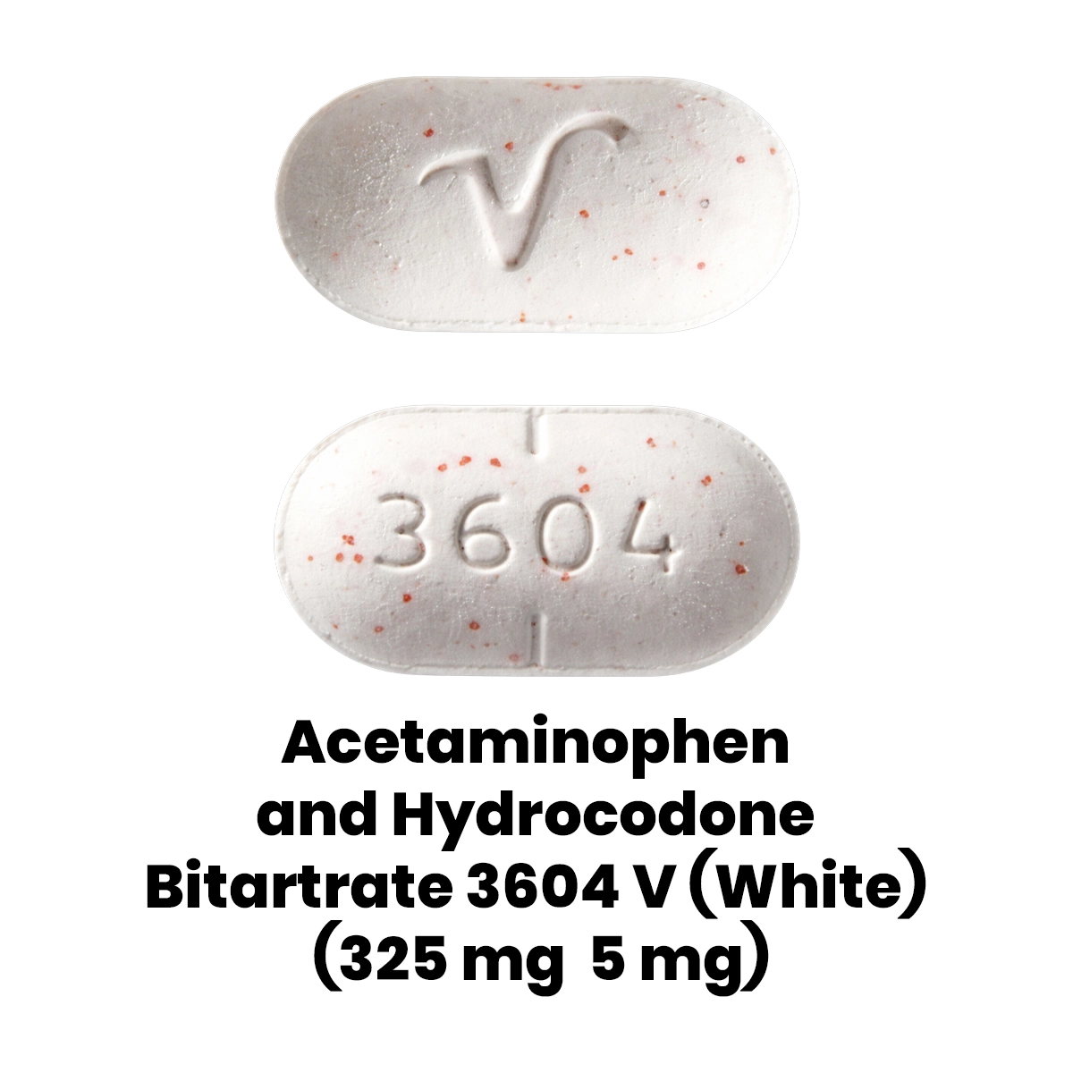 Related Medication: Acetaminophen And Hydrocodone Bitartrate 35 91 V (White / Red Specks) (500 mg / 2.5 mg), Acetaminophen and Hydrocodone Bitartrate M376 (White) (300 mg / 5 mg), Acetaminophen and Hydrocodone Bitartrate WATSON 3202 (White) (325 mg / 5 mg), Acetaminophen and Hydrocodone Bitartrate IP 109 (White) (325 mg / 5 mg), Acetaminophen and Hydrocodone Bitartrate M365 (White) (325 mg / 5 mg), Acetaminophen and Hydrocodone Bitartrate T 257 (Off White / Orange Specks) (325 mg / 5 mg)