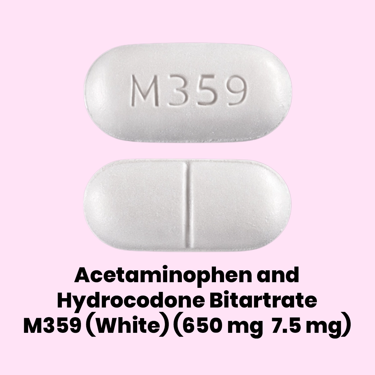 Acetaminophen and Hydrocodone Bitartrate M359 (White) (650 mg / 7.5 mg)